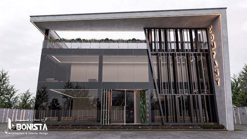 طراحی نمای مجموعه اداری با استفاده از سبک مدرن